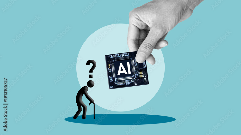 Senior People Facing Artificial Intelligence Technology, Challenges of Digital Adaptation, AI Integration and Generational Technology Gap Concept #1913105727