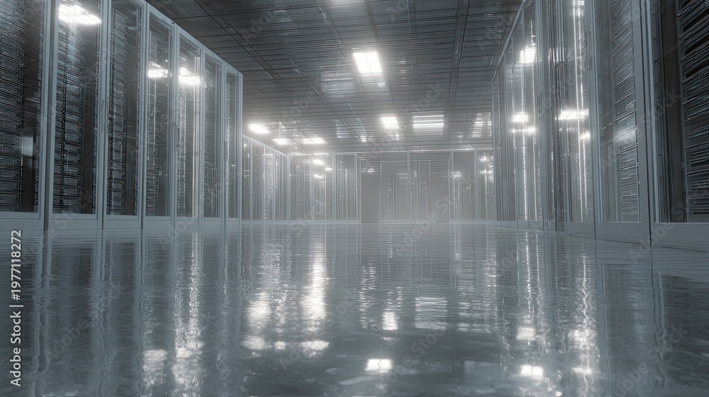Server room reflecting modern technology and data connections, organizing vast amounts of information and ensuring seamless digital operations for global networks and services #1977118272