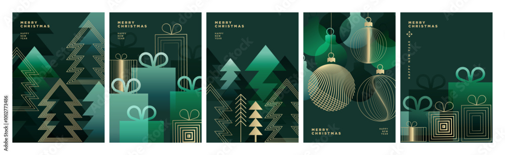 Set of Christmas and New Year Cards. Vector illustration concepts for graphic and web design, social media banner, marketing material. #1002773486