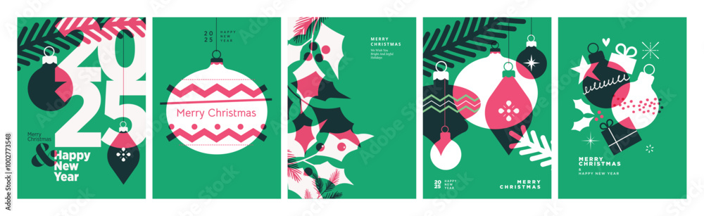 Set of Christmas and New Year Cards. Vector illustration concepts for graphic and web design, social media banner, marketing material. #1002773548