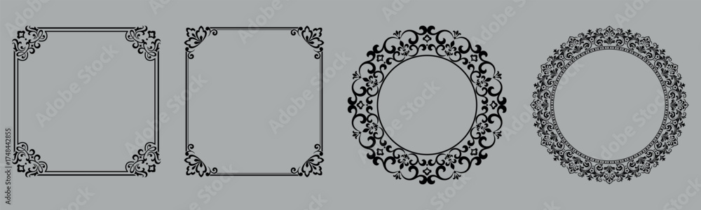 Set of decorative frames Elegant vector element for design in Eastern style, place for text. Floral black and gray borders. Lace illustration for invitations and greeting cards #1748442855