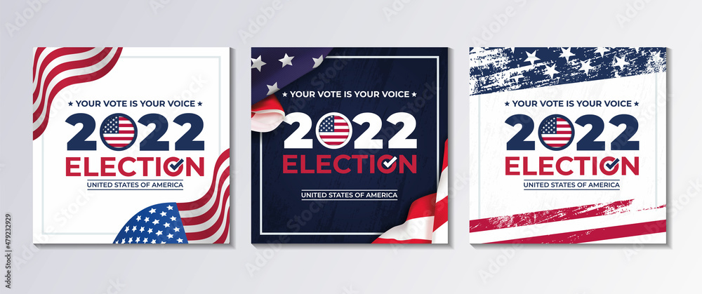 set of square illustration vector graphic of united states flag, election and year 2022 perfect for election day in united states, united states flag #479232929