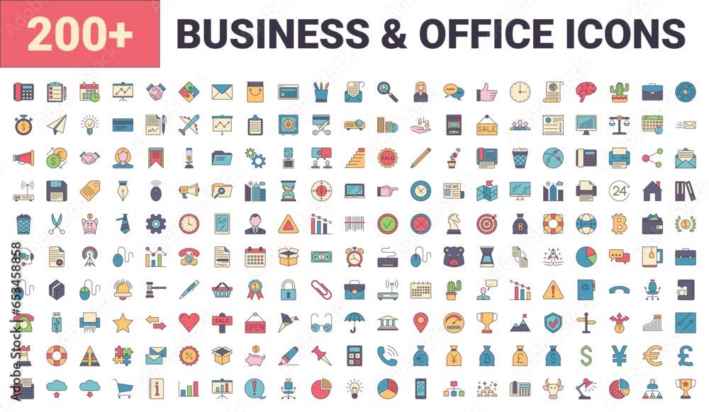 Set vector business, banking and finance icons set. Icons for business, management, finance, strategy, banking, marketing and accounting for mobile concepts and web. Modern pictogram #653458858