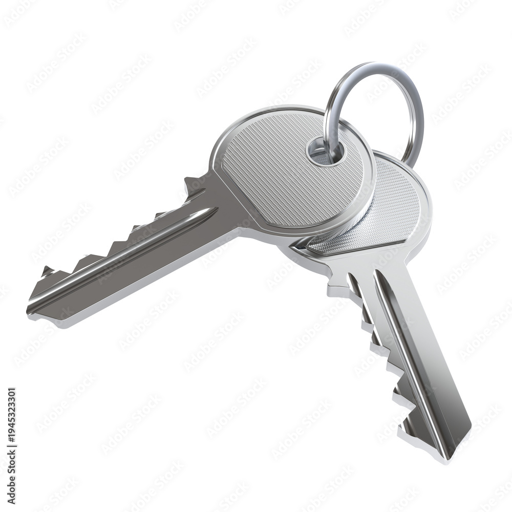 Silver house keys 3d metal keychain isolated #1945323301