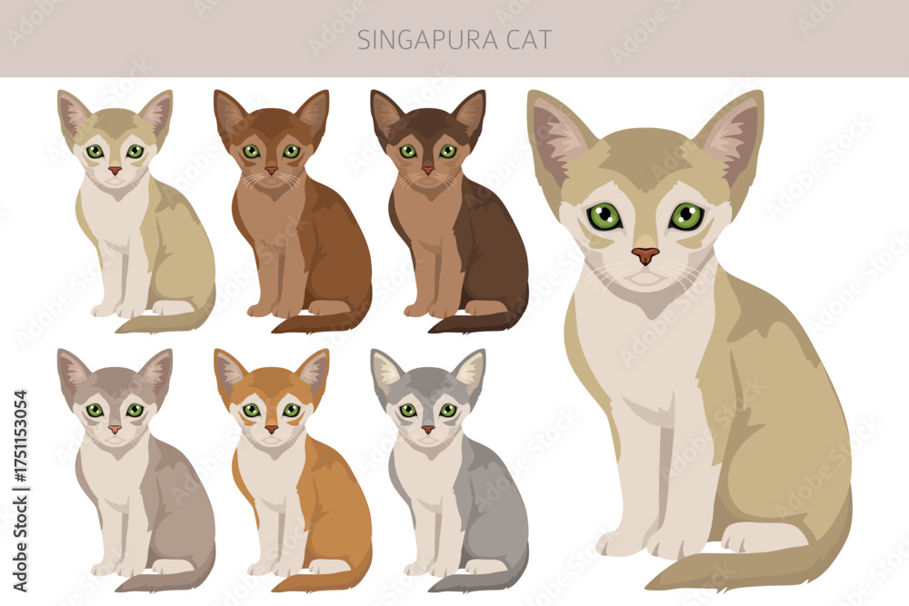 Singapura Cat clipart. All coat colors set. All cat breeds characteristics infographic. Vector illustration #1751153054