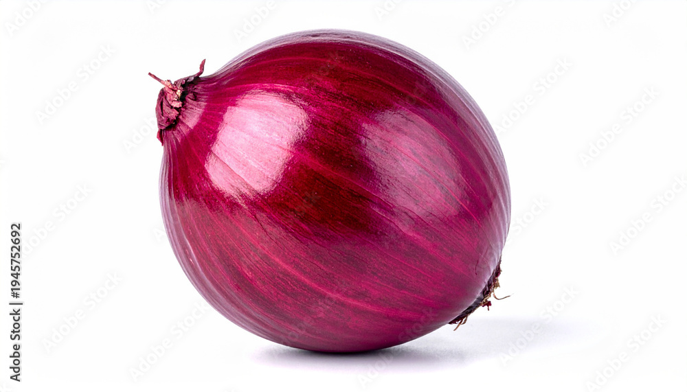 Single vibrant red onion with distinct purple skin and visible layers #1945752692