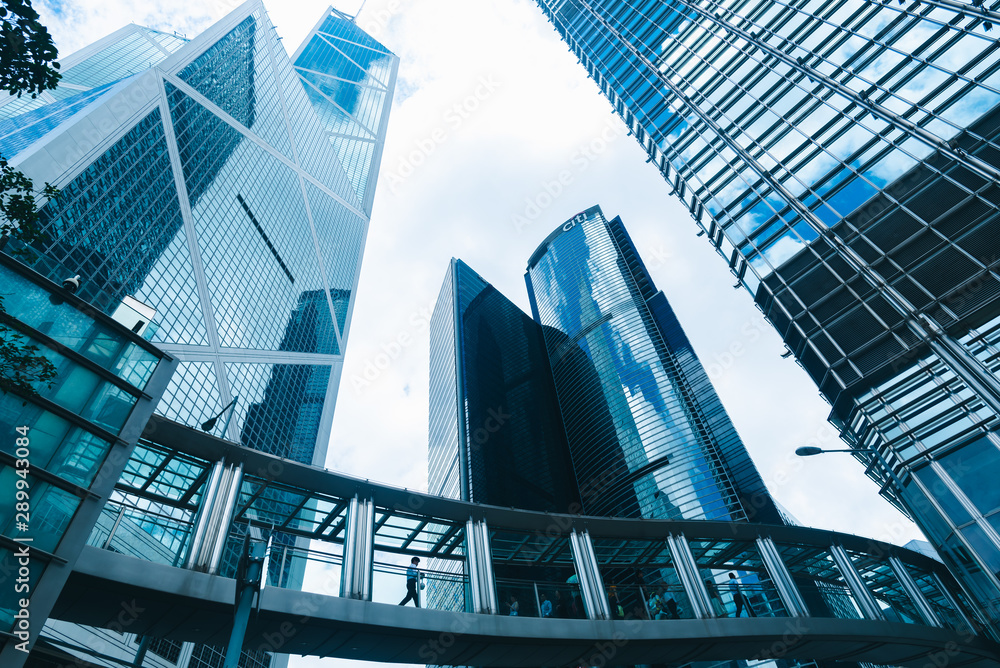 skyscraper building in Hong Kong, city view in blue filter #289943084