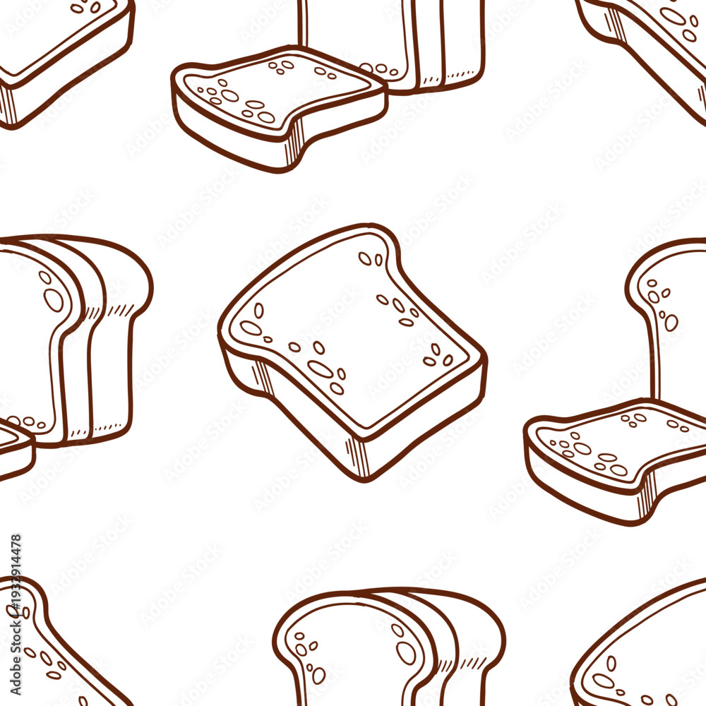 Slices of brick bread line art on white seamless pattern background #1932914478