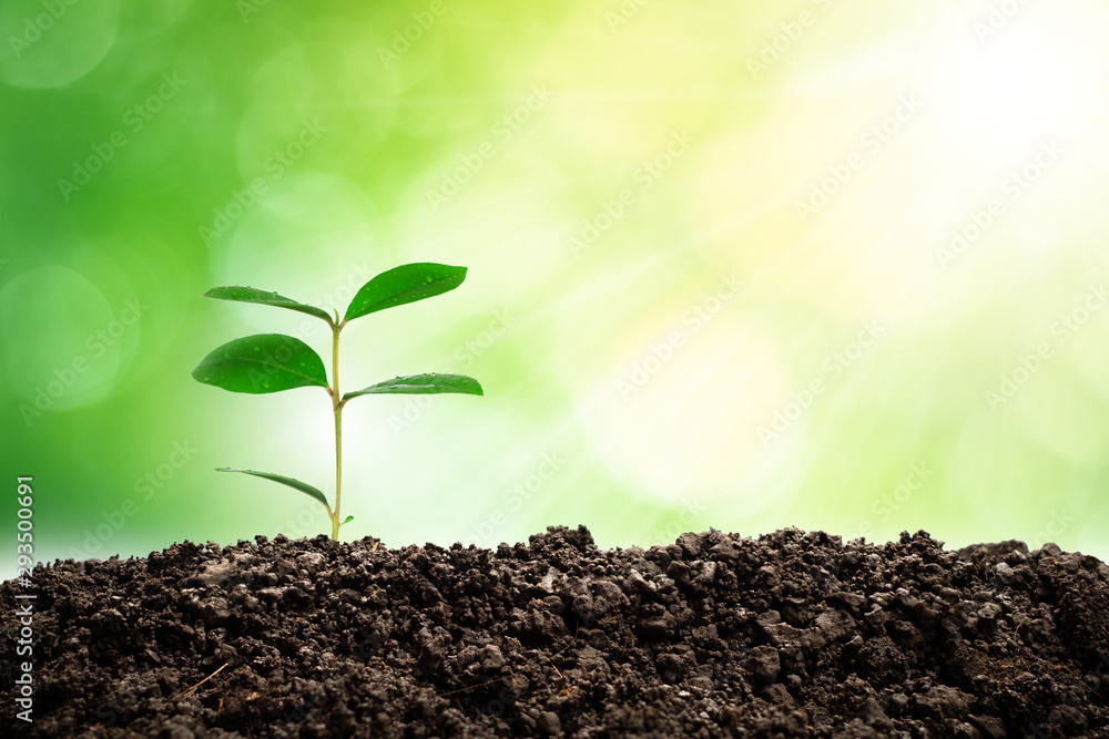 Small trees are growing in the light of the morning sun with natural green background. The concept of love the world. #293500691