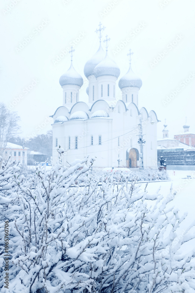 Snowfall in Vologda, a landscape of the city's historic center on a winter day, a cathedral in January #1965760706