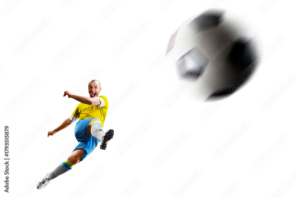 Soccer. Image on a white background. Football players. Soccer championship. Sports concept. Professional soccer player in action. Isolated #1793515879