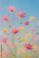 Soft focus image of colorful wildflowers in bloom against clear blue sky, creating dreamy spring atmosphere #1743569432