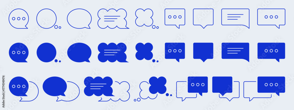 Speech bubble icons. Dialog balloon frames, chat message symbols for conversation app line and flat style, comment and contact web design, blank empty talk bubbles. Vector set #1774548476