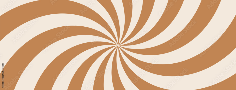 Spiral Candy Swirl Background, Ice Cream Chocolate Pattern. Sweet Graphic Lollipop Twist Bg. Retro Groovy Radial Sunburst Banner. Abstract Psychedelic Style. #1967314431