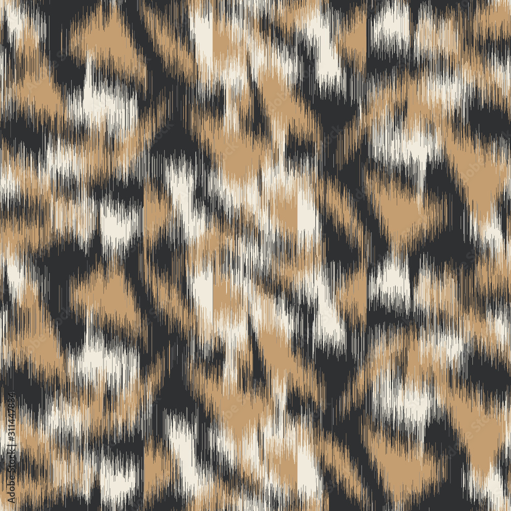 Spliced vector camouflage spots texture. Variegated animal skin background. Seamless camo ikat pattern. Modern distorted mottled textile all over print. Cat leopard fashion disrupted tile repeat. #311447834