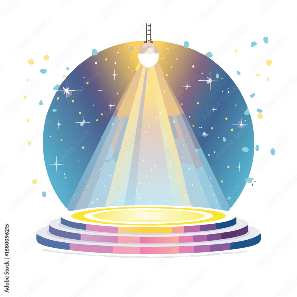 Spotlight on a colorful stage with a starry night background and confetti beam stars #1680096215