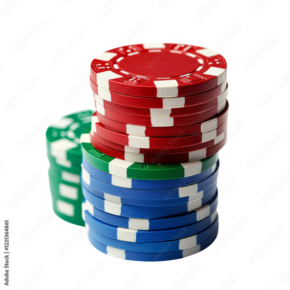 Stacked poker chips in red, blue, and green on a transparent background #1221364861
