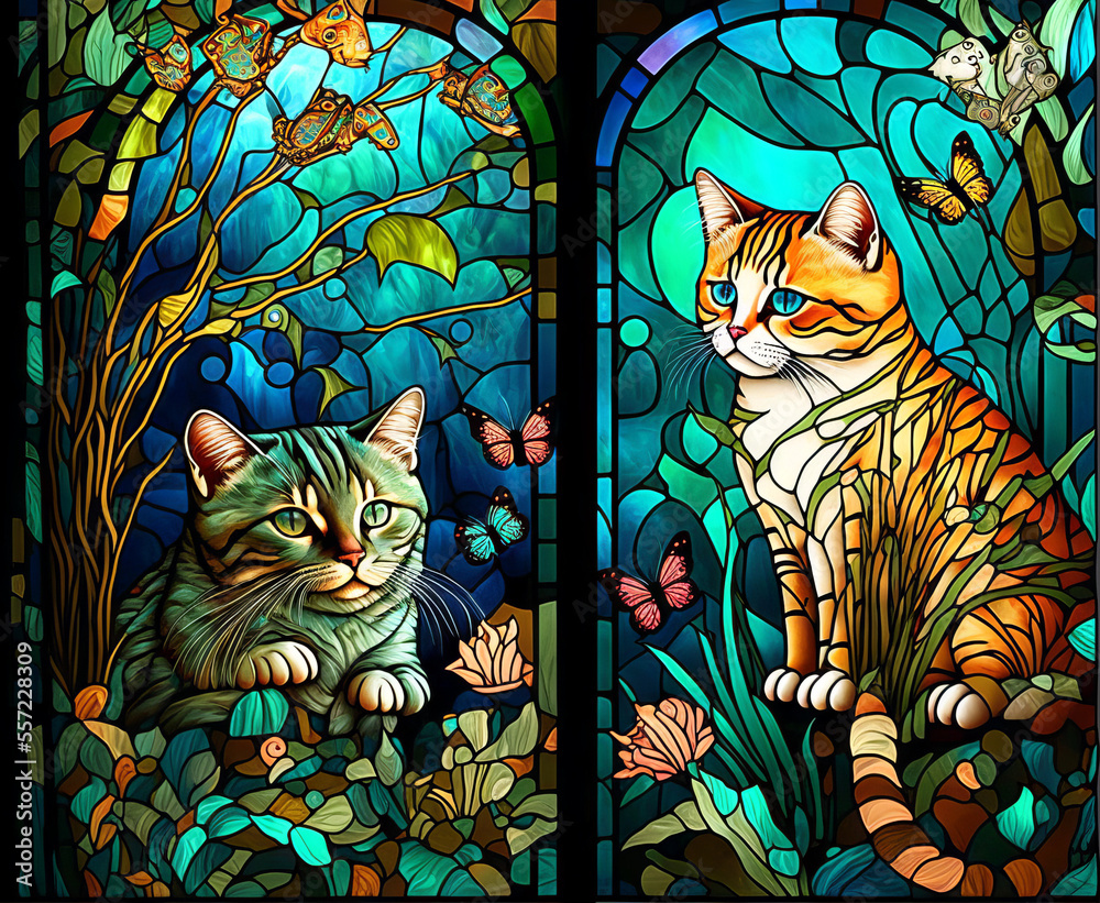 Stained Glass Windows with Cats in the window. Generative ai #557228309