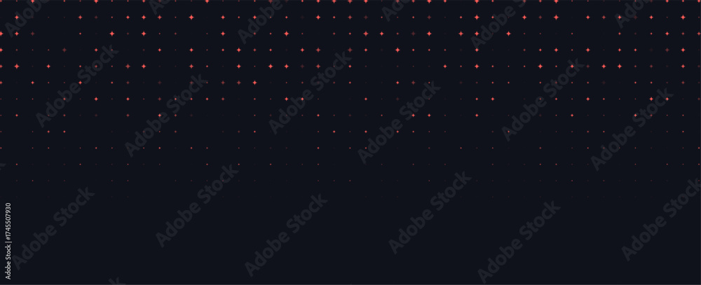 Star Night Background With Red Coral Sparkle On Dark Sky, Minimal Copy Space Banner For Party, Event, Web And Social Designs. Modern Elegant Cosmic Texture. Vector Illustration #1745507930