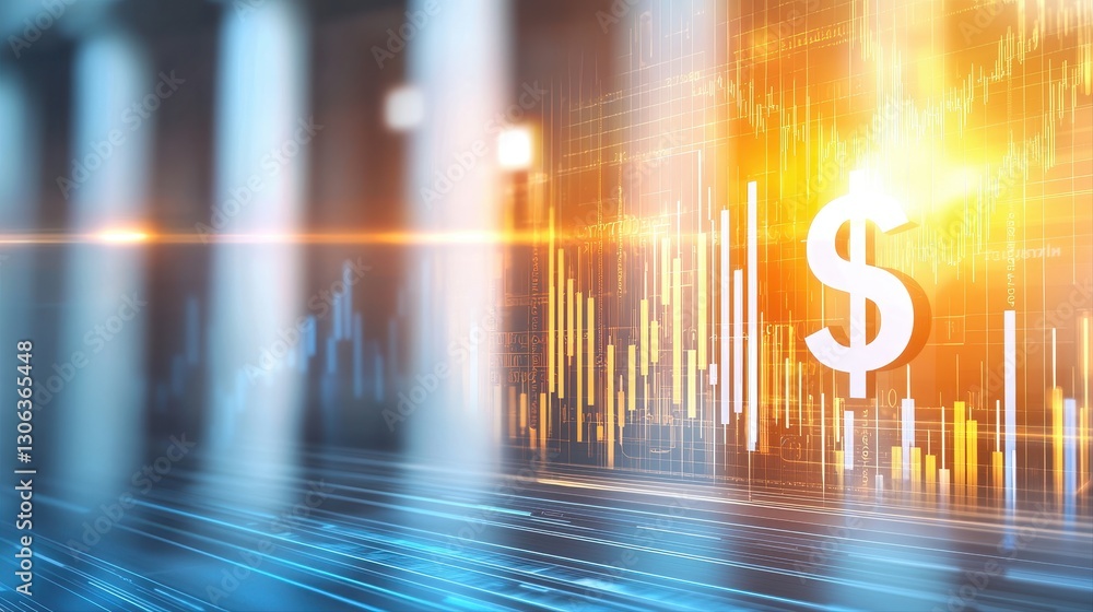 Stock market display with dollar sign representing business concept and bank loan interest rates #1306365448