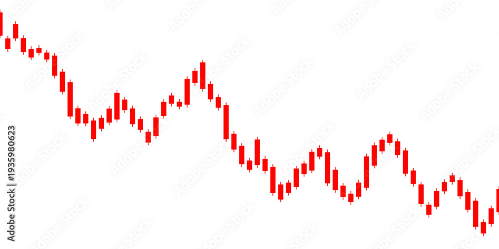 Stock trade chart. Trading graph. Red candle forex market isolated on white background. Candlestick investment finance. Stockmarket price. Falling business. Invest design. Down. Vector illustration #1935980623