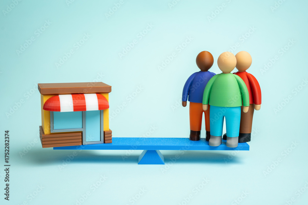 Store and customers on the scales. Supporting local businesses. Jobs, support for the local economy. Consumer behavior, market sustainability, and regional development #1752282374