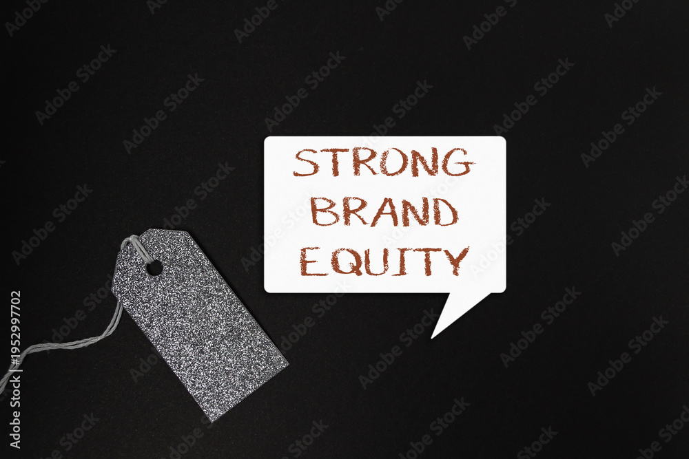 Strong brand equity concept displayed on a speech bubble with a glittery tag, emphasizing marketing strategies and business growth in a professional setting #1952997702