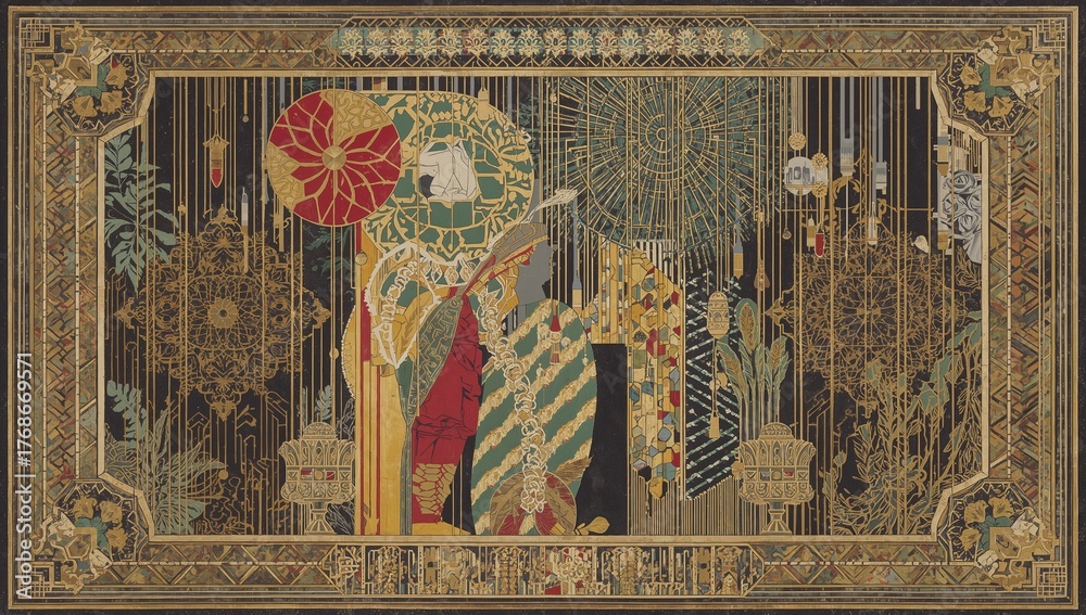 Stylish Art Deco illustrations featuring golden geometry, vintage elegance, and 1920s inspired fashion — luxurious and sophisticated design for modern interiors. #1768669571