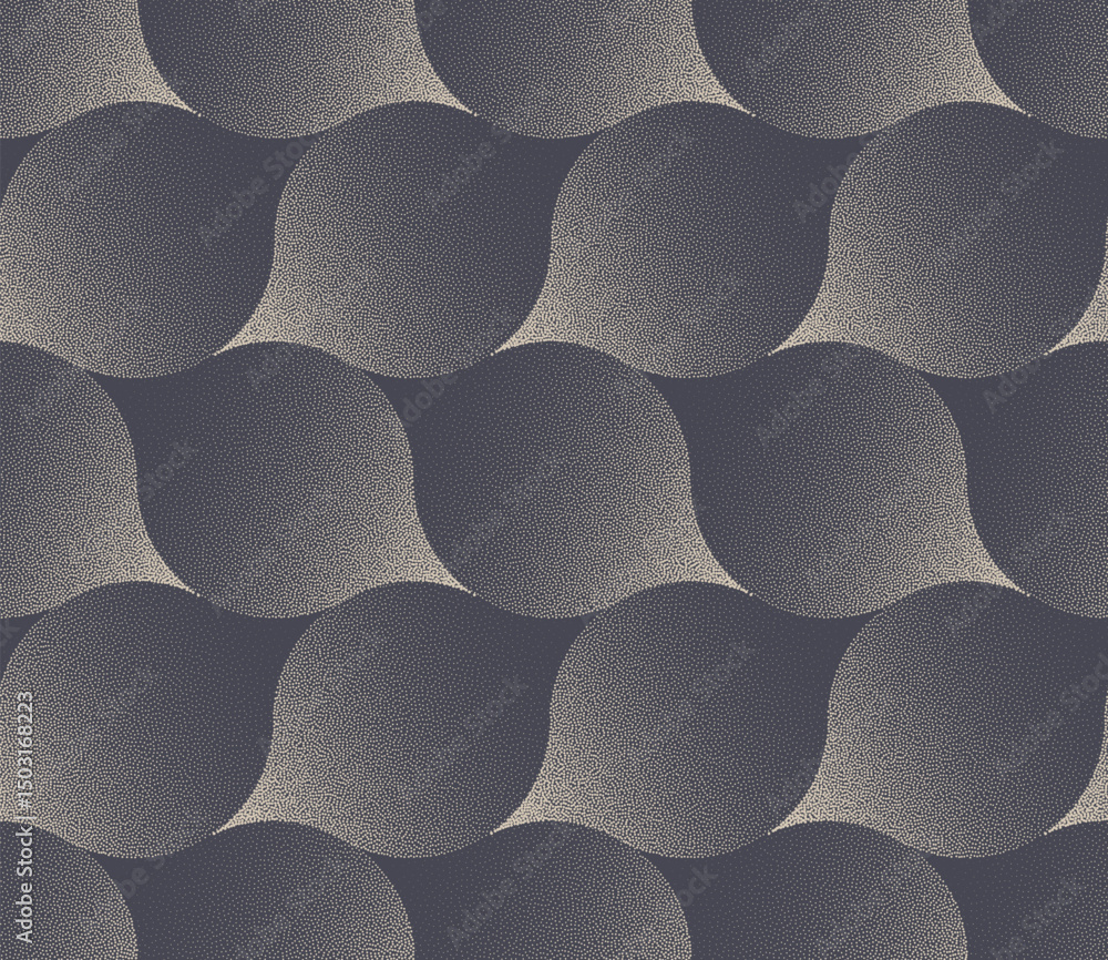 Stylized seamless pattern with overlapping circles forming fluid negative spaces. Made with stipple gradient texture for modern, elegant and soft appearance on various print or endless graphic designs #1503168223
