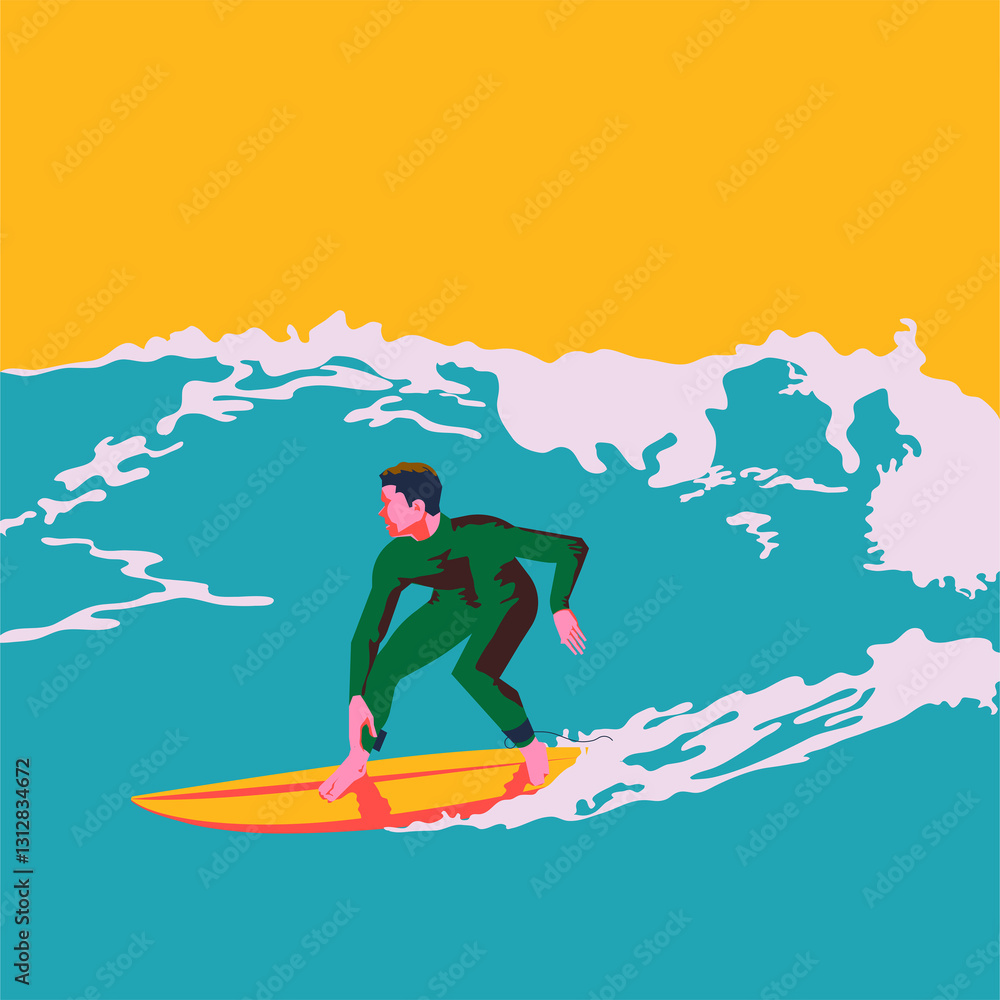 Surfer practicing surfing sport in summer at the beach #1312834672