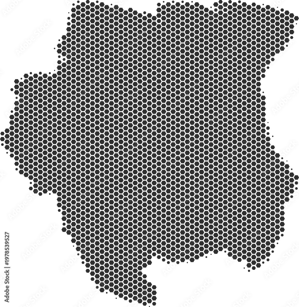 Suriname map hexagonal half tone pattern isolated transparent PNG design element. Modern technological contour map of Suriname for design, infographic, presentations or business projects #1978539527