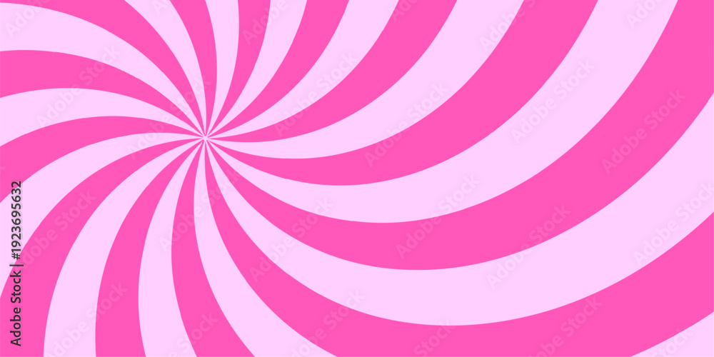 Swirl candy spiral backdrop with cream and strawberry whirlpool creates a retro Y2K vortex. Pink whirlpool bg. Psychedelic radial pattern with pastel pink twirls and vintage circus vibes. #1923695632