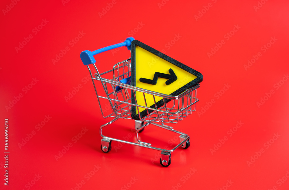 Symbol of falling in a shopping cart. Decline in consumer demand, rising prices, and inflation. Suitable for economy, family budgets, market instability, and purchasing power topics. #1696995210