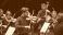 Symphony orchestra musicians playing instruments on stage. Young male violinist performing classical music in concert black #1940629700