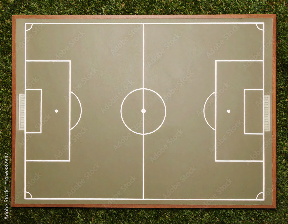 Tactical Soccer Clipboard with Field Diagram Lying on Grass During Outdoor Team Practice or Match Preparation #1456382947