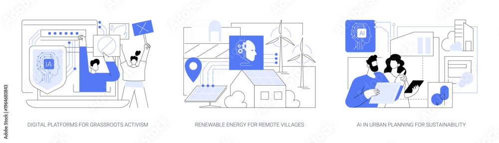 Tech, AI Driving Sustainability and Social Change abstract concept vector illustrations. #1964680843