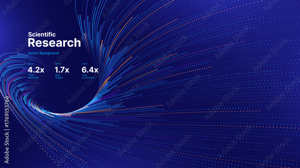 Technology Digital Particles Flow Background with Blue Glowing Data Lines for Science Research, AI Artificial Intelligence, and Big Data Presentation. Futuristic Abstract Vector Illustration. #1769153766