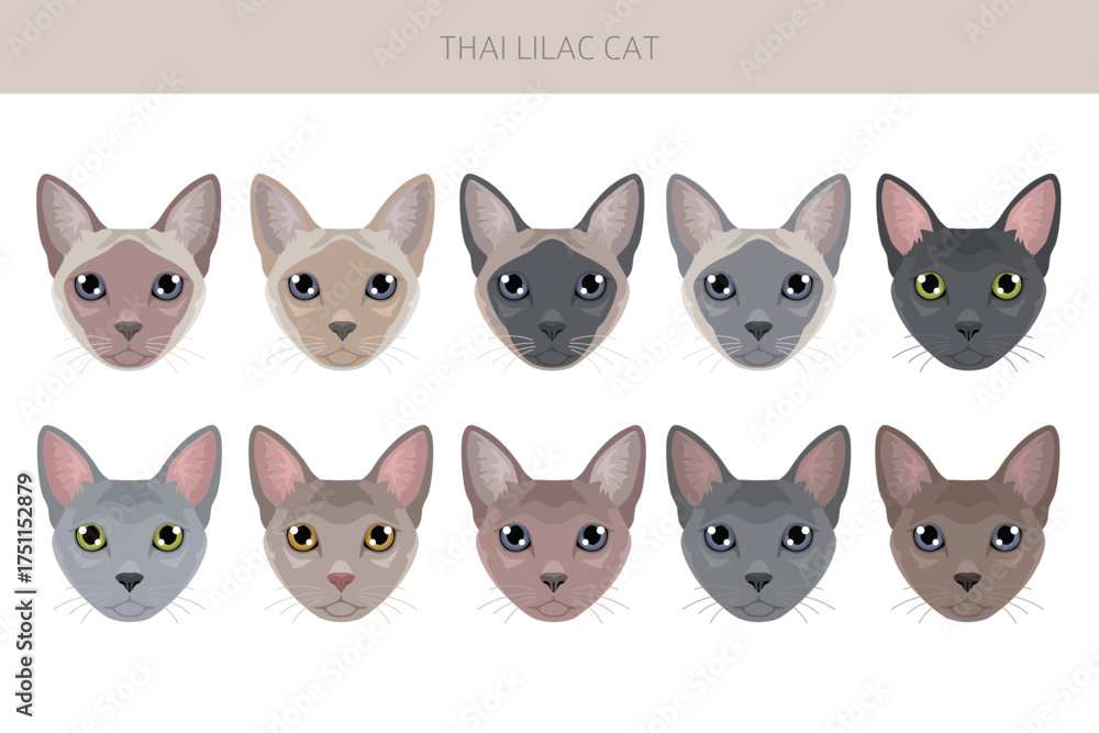 Thai Lilac Cat clipart. All coat colors set. All cat breeds characteristics infographic. Vector illustration #1751152879