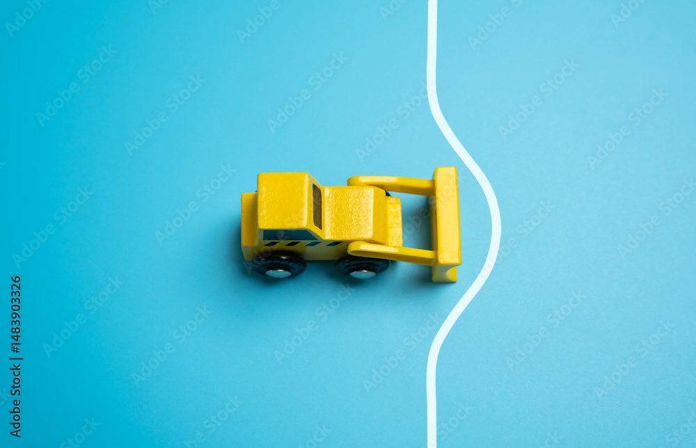 The bulldozer pulls back the border and expands the space. Expansion of limits and what is permitted. Increasing the territory of development area and construction. #1483903326