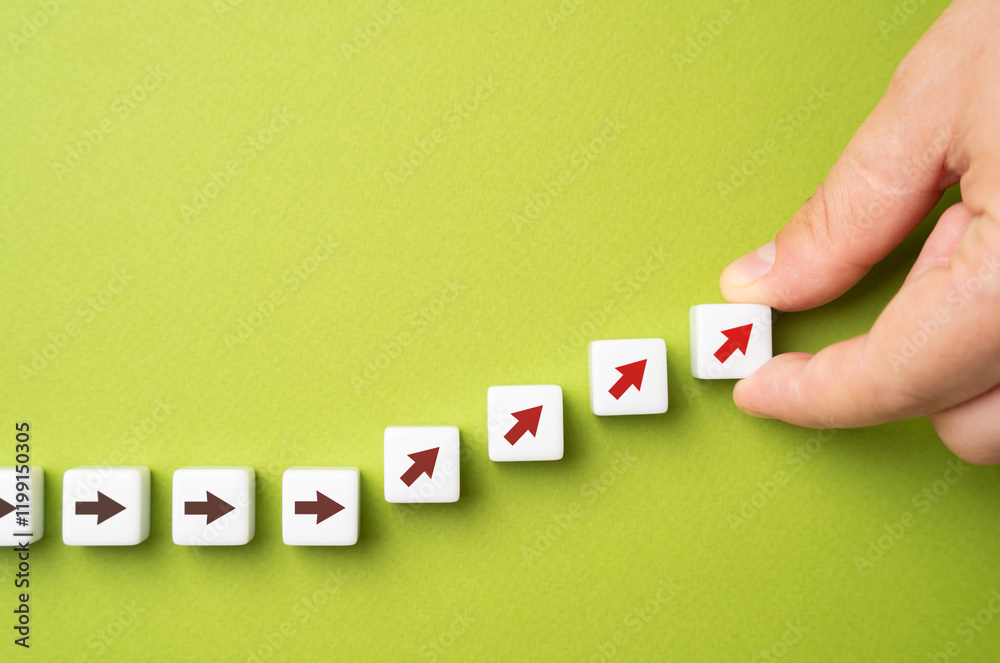 The hand points upwards towards the arrows. Forced increase of indicators or creation of conditions for changing the trend to growth. Overstatement of figures and indicators. Exceeding the plan. #1199150305