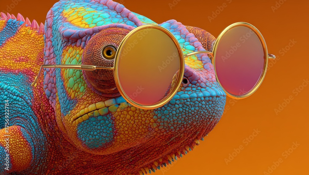 The image depicts a cool lizard with sunglasses, presented in a full body view, isolated on a flat colored background, as quirky art #1756922784