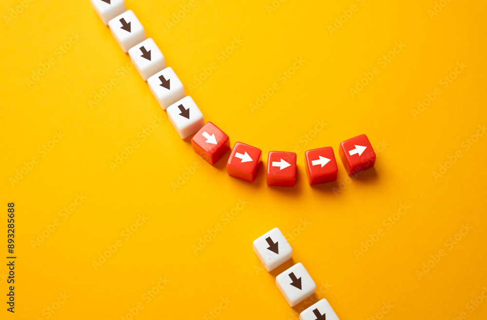 The path of the arrows deviates from the main path. Go off the road, deviate from the course. Take the risk of changing the movement and course of events. #893285688