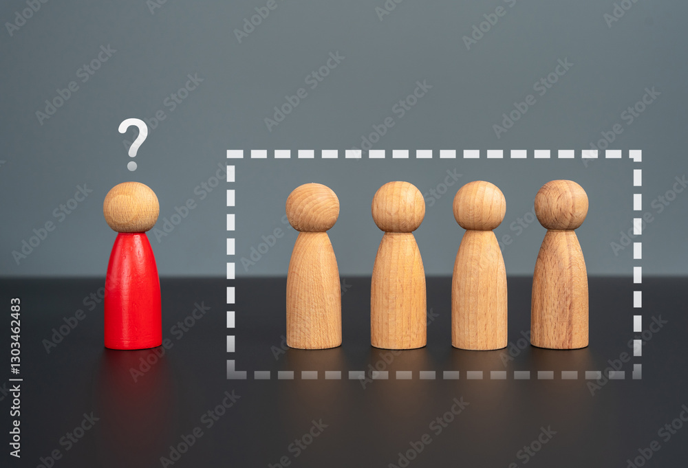 There is no place for the red man in the group. Social isolation. Exclusion, discrimination. #1303462483