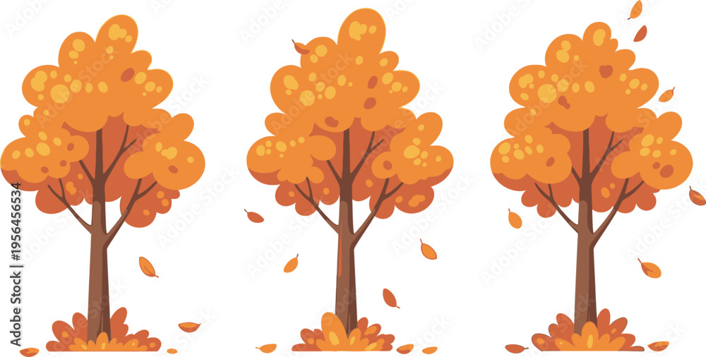 Three orange trees with falling leaves in autumn #1956456534