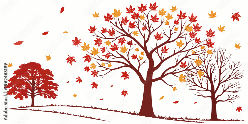 Three trees with leaves falling in autumn #1962463199