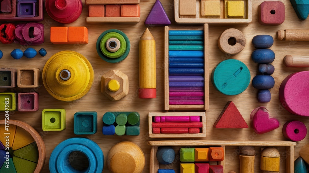 Toy many colorful educational wooden. play, Top view, executive function, kid, skill, education, intelligence quotient, emotional quotient, childhood, development #1772047983