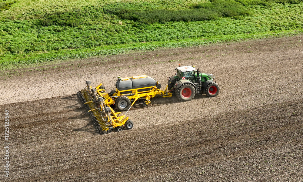 Tractor cultivating a field with a pneumatic drill machine - 0129 #1725125547