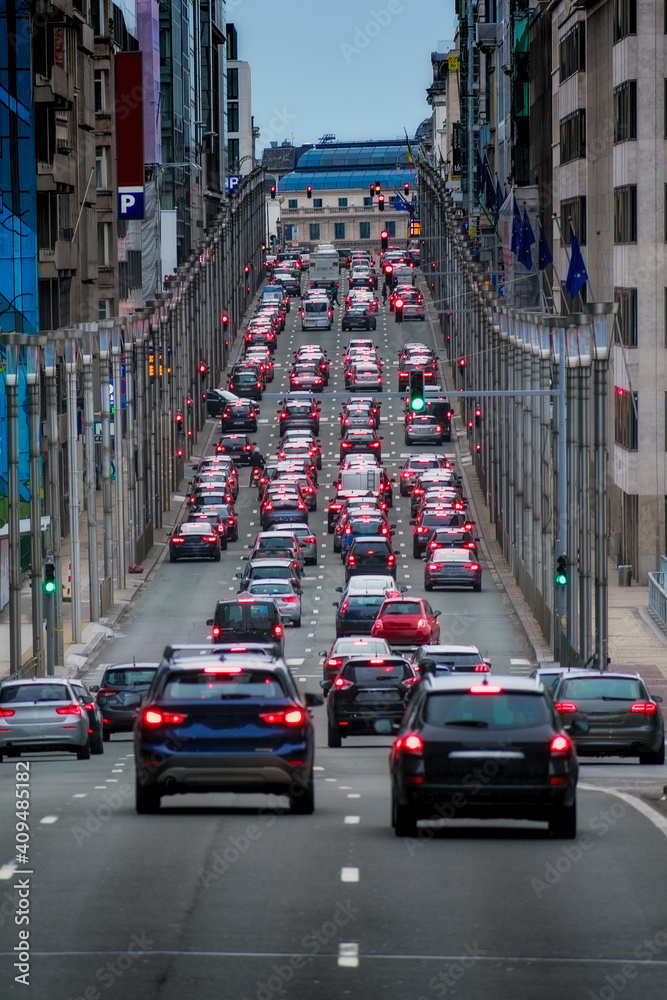 Traffic jam on Rue de la Loi, Brussels, Belgium. #409485182