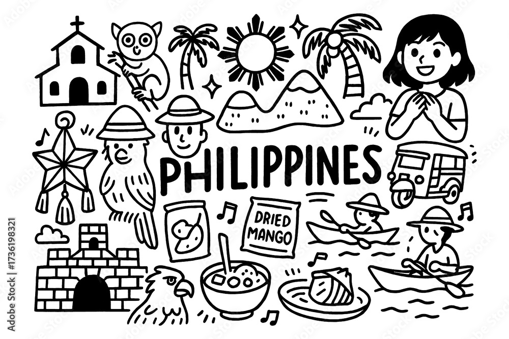 travel doodle composition with philippines culture icons and traditional holiday elements, Transparent Background #1736198321