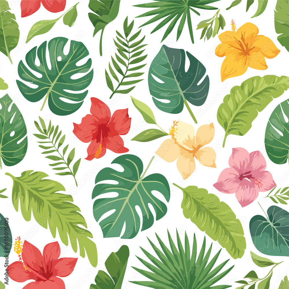 Tropical floral pattern with hibiscus flowers and monstera leaves vector #1680095100